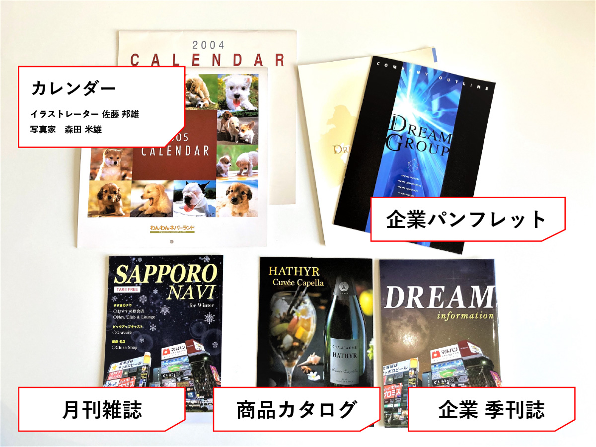 出版印刷に携わってきた豊富な経験と出版社や編集プロダクション等、様々な業界関係者との連携を活かし、書籍、雑誌、商品カタログや彼レンダー、会社案内などを企画立案からデザイン提案、出版を展開しています。お客様が求める内容を多種多様なテーマ作りとアイディアを提案しサポート致します。